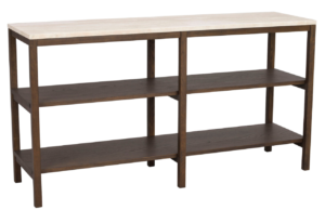Kamenný toaletní stolek ORWEL značky ROWICO představuje skvělý způsob, jak dostat do interiéru styl a zároveň praktický kousek nábytku. Tento vzdušný toaletní stolek nabízí čtyři police a desku z travertinového kamene, jejíž dekor vytváří luxusní nádech společně s hnědou dubovou podnoží. Dubové dřevo získalo certifikát FSC, díky této certifikaci je toaletní stolek ekologicky šetrný a výroba stolku tak nezatěžuje životní prostředí. Stolek můžete využít na vystavení dekorace a rodinné fotografie, či na sbírku knih.