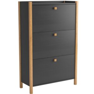 Tmavě šedý botník Woodman Hannover s dřevěnou podnoží 44 x 125 cm