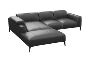 Černá kožená rohová pohovka FLEXLUX VOLUZZI 233 cm, levá