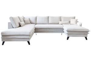 Béžová čalouněná rohová rozkládací pohovka do "U" Miuform Charming Charlie 302 cm, pravá