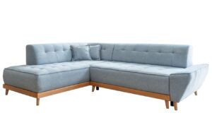 Světle modrá čalouněná rohová rozkládací pohovka Miuform Dazzling Daisy 260 cm, levá/pravá