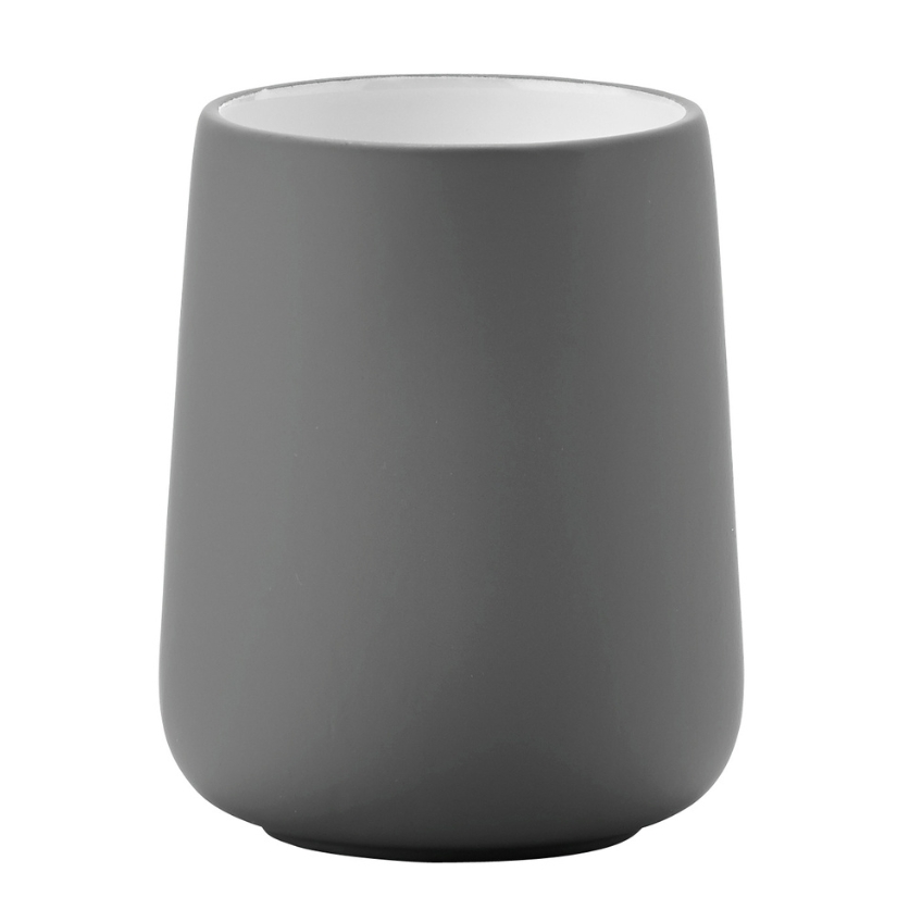 Minimalistický porcelánový kelímek na zubní kartáčky Nova od dánské značky Zone Denmark je nezbytným doplňkem k vašemu umyvadlu. Díky minimalistickému a jednoduchému designu se tmavě šedá porcelánová dóza do koupelny hodí nejen jako stylový držák na kartáčky, ale také pro organizaci doplňků pro líčení či hřebenů. Speciální povrchová úprava soft-touch zajistí, že je porcelán příjemný na dotek a zároveň skvěle odolný vůči nepříjemným otiskům prstů či poškrábání. Stylové stojany na zubní kartáčky nabízíme v šesti atraktivních barvách.